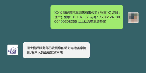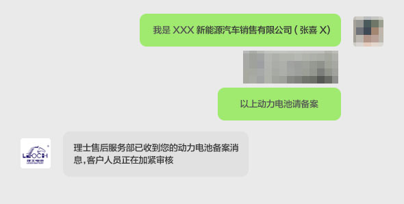 注:电池信息需要准确清晰,结束时请注明“以上动力电池请备案”字样